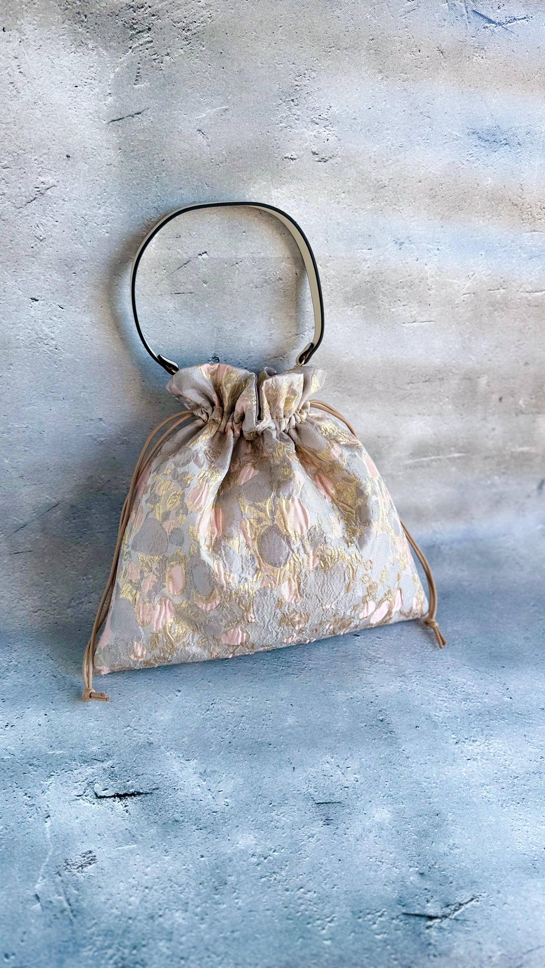 インポート生地で作った巾着バッグ