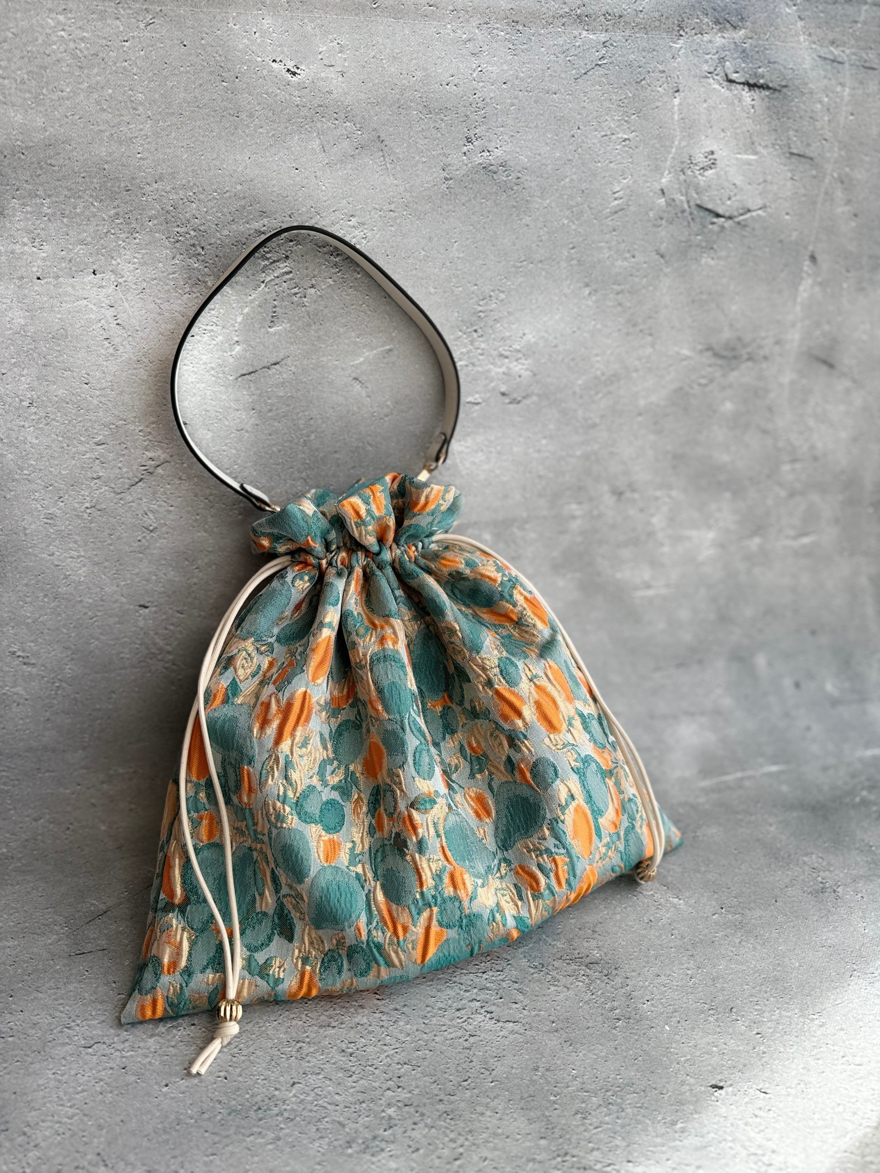 インポート生地で作った巾着バッグ